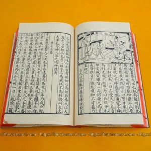 Sách được khâu thủ công theo lối cổ, bìa cậy nâu, in giấy xuyến chỉ hoặc dó gấp đôi, đọc ngược từ phải sang, khâu gáy bằng chỉ dù, quét nâu, tem sách chống xước, mực in chống nước không phai màu.