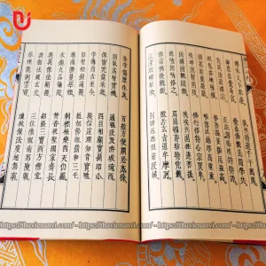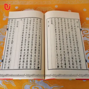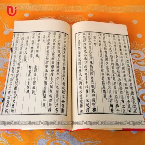 Sách được khâu thủ công theo lối cổ, bìa cậy nâu, in giấy xuyến chỉ hoặc dó gấp đôi, đọc ngược từ phải sang, khâu gáy bằng chỉ dù, quét nâu, tem sách chống xước, mực in chống nước không phai màu.